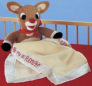 The next generation of Rudolph fans have not been overlooked. Here's a soft bedtime cudley plush Rudolph fleece blanket/doll. Safe for baby's crib this plush baby toy features quality fleece with an embroidered "My First Rudolph" on the satin trim.