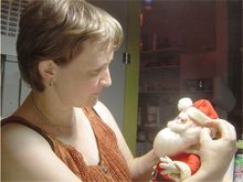 Robin Walsh of Screen Novelties at work on the final touches of Santa.